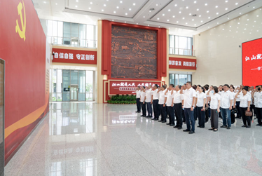 參觀前,參加活動的黨員干部集體面對鮮紅黨旗重溫入黨誓詞。鏗鏘有力的宣誓聲,表達(dá)了唐山公交廣大黨員干部對黨忠誠的鄭重承諾,始終不忘初心、牢記使命、聽黨話、跟黨走的堅(jiān)定決心。