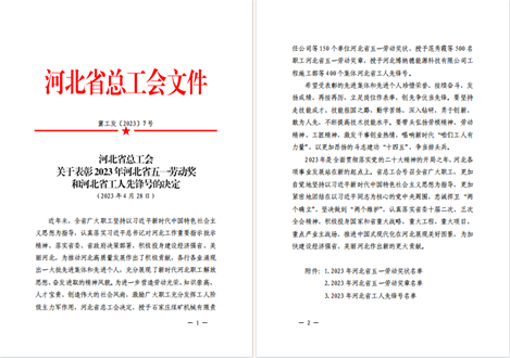 2023年4月28日,河北省總工會發(fā)布《關(guān)于2023年河北省五一勞動獎和河北省工人先鋒號的決定》,唐山交發(fā)集團公交總公司二公司 2 路營運車隊被授予2023年“河北省工人先鋒號”榮譽稱號,唐山交發(fā)集團公交總公司四公司 46 路駕駛員翟澤明被授予2023年河北省五一勞動獎?wù)隆?/span>