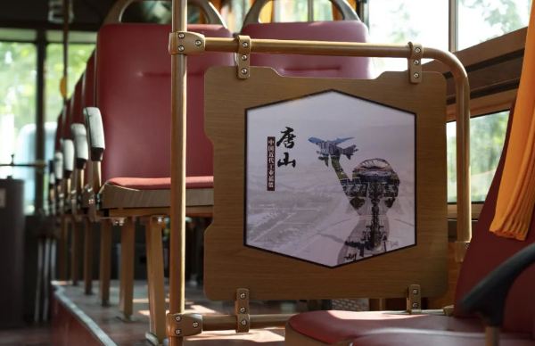 車身外形與眾不同,車內(nèi)文化也極具特色。交發(fā)集團以“一車一主題”為原則,打造了工業(yè)歷史、旅游景點、特色美食、戲曲文化等多個主題文化車廂。利用燈箱、擋板、拉手等車內(nèi)設(shè)施,以圖文并茂的形式介紹唐山文化,串起唐山百余年發(fā)展的歷史脈絡(luò)。鐺鐺車成為了傳遞歷史文化的“流動課堂”,整個車廂營造出濃厚的特色文化氛圍。