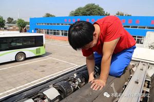 11點10分,室外的溫度已經達到36℃,而在不遠處的維修車間,溫度早已直逼40℃,還有一些修理工正在地溝里接受著高溫的考驗。有組修理工正準備給一輛動力不足、耗油量大的公交車“治病”。只見他熟練地跳進1米多深的地溝,在幾乎不透風的地溝里,仰著頭細心地查看這輛車的天然氣系統(tǒng),每一個小部件都不放過。“原來是天然氣上的減壓器有問題,可算找到你了。”可是將減壓器取出并不是件輕松的事。小小的減壓器緊貼在發(fā)動機油底殼旁邊,固定它的是三根長管子和三顆小螺絲,在狹小的地溝里,修理工只能抬著胳膊,兩個手交叉著小心翼翼地擰螺絲。15分鐘后,減壓器拆除完畢。走出地溝的修理工周身衣服混著汗水和機油,又臟又濕,胳膊上還被蚊子咬了好幾個大包,可他卻絲毫不在意,徑直走到配件柜,取出減壓器修理包。磨片、膠片墊……一個個易損的配件被更換掉。下午1點,修理工整整花了一個半小時才修理完畢??伤麄冞€不能去吃飯,要將減壓器重新安裝到車里。“干我們這行,夏天的工作量大,除了正常的保修外,還有臨時出問題的車輛要修理,吃飯這個事情是什么時候修完什么時候吃。每天流了多少汗自己也記不清了,不過看著經自己手修理的公交車奔跑在路上,乘客坐著放心出行安全,心里都是滿足感,流再多汗也覺得值!”