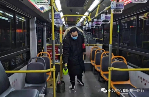 凌晨5:20,等待發(fā)車的我迎來幾張陌生面孔,莫不是新入職的駕駛員?原來他們暫時(shí)不能承擔(dān)駕駛員的工作,但是他們加入了防控的隊(duì)伍。為準(zhǔn)備上崗的駕駛員測量體溫,給運(yùn)營車輛在出車前、收車后集中消殺通風(fēng),針對乘客易接觸的投幣箱、扶手、座椅等部位重點(diǎn)消毒,嚴(yán)格執(zhí)行一趟一通風(fēng)、一趟一消殺。老搭檔告訴我,只有接受消毒噴灑的洗禮,才能躋身抗擊疫情的行列。“來吧,我身經(jīng)百戰(zhàn),怎會退縮!”一切準(zhǔn)備完畢,出發(fā)。